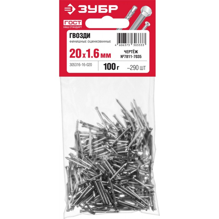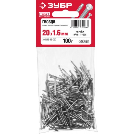 ЗУБР 20 x 1.6 мм, цинк, 100 г, финишные гвозди (305316-16-020)