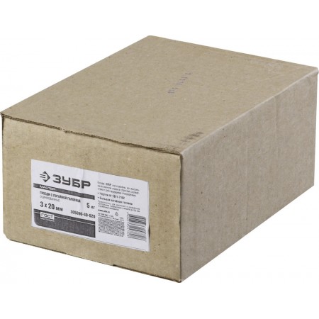Гвозди 20?3 мм с большой потайной головкой цинк 5 кг ЗУБР 305090-30-020