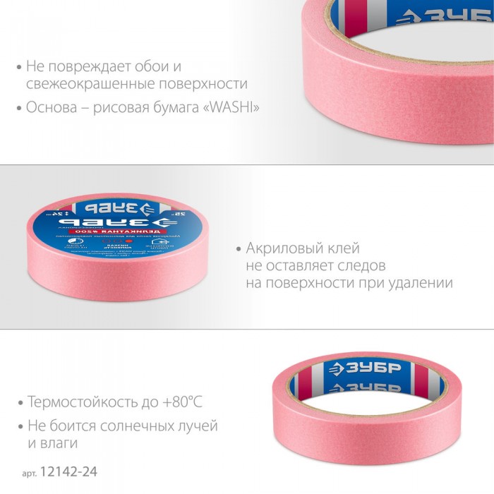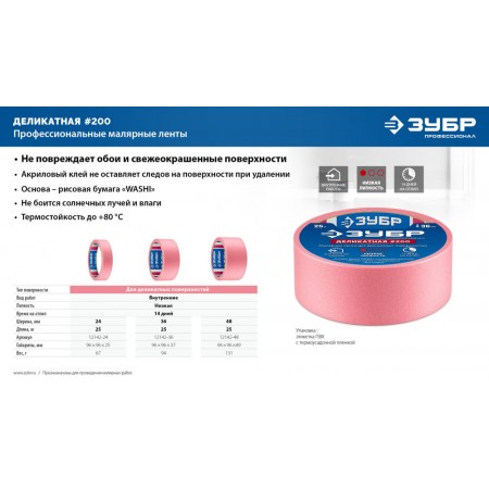 Малярная лента для деликатных поверхностей предназначена для работы с покрытиями, требующими особого ухода. Стоек к УФ-лучам, влаге, температуре до +80°С, надежно приклеивается к поверхности, позволяя получившейся линии быть максимально ровной, без подтеков краски. Легко удаляется, сохраняя первоначальный вид поверхности, не оставляя после себя следов клея.