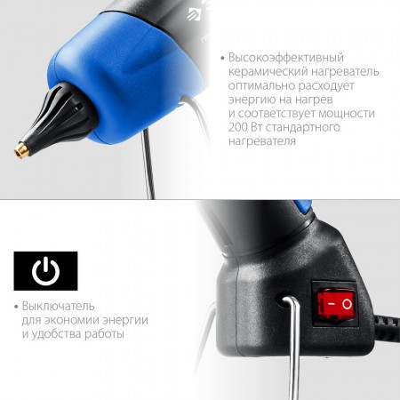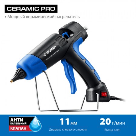 Пистолет термоклеевой электрический 200, d 11 мм, 20 г/мин ЗУБР Профессионал 06852-11