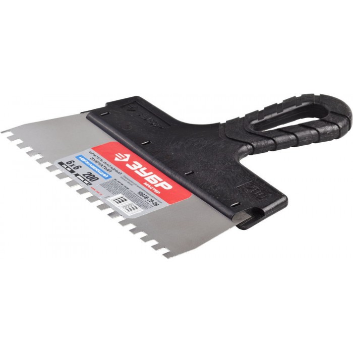Шпатель фасадный нержавеющий 200 мм зуб 6?6 мм пластиковая ручка ЗУБР 10078-20-06
