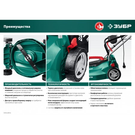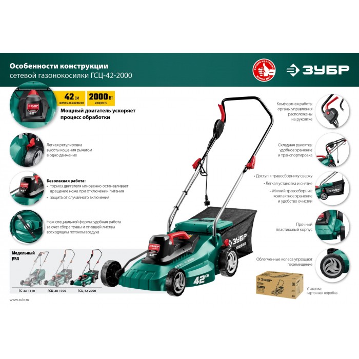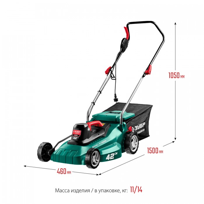 ЗУБР 2000 Вт, ш/с 42 см, сетевая газонокосилка (ГСЦ-42-2000)
