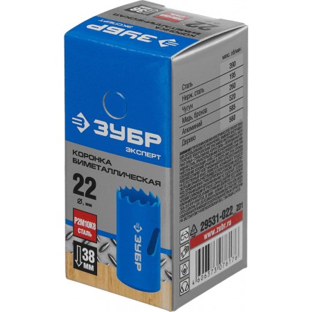 Коронка биметаллическая 22 мм, сталь Р6М5 ЗУБР 29531-022_z01