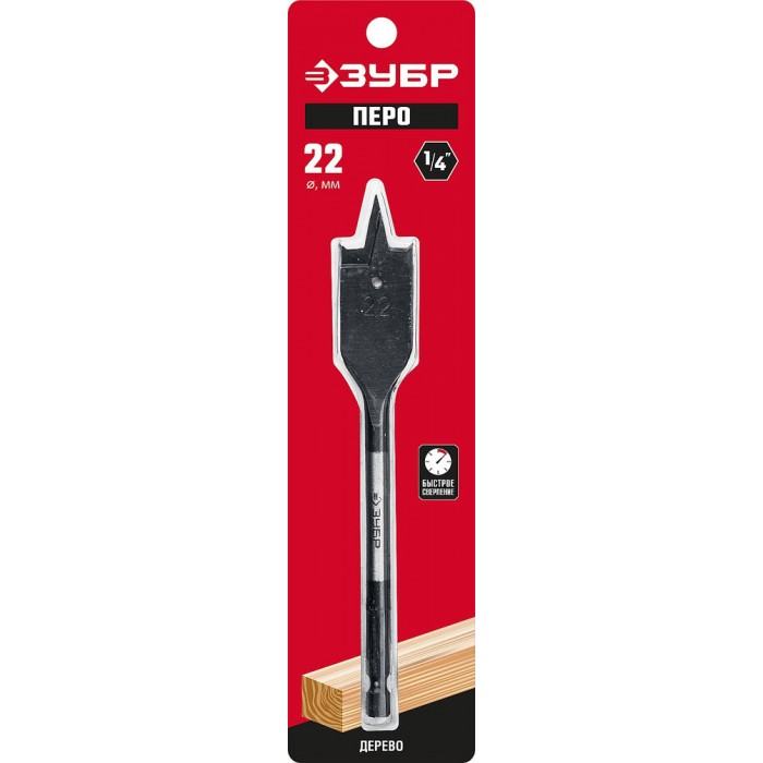 Сверло перовое по дереву 22?152 мм с боковыми подрезателями ЗУБР 29505-22