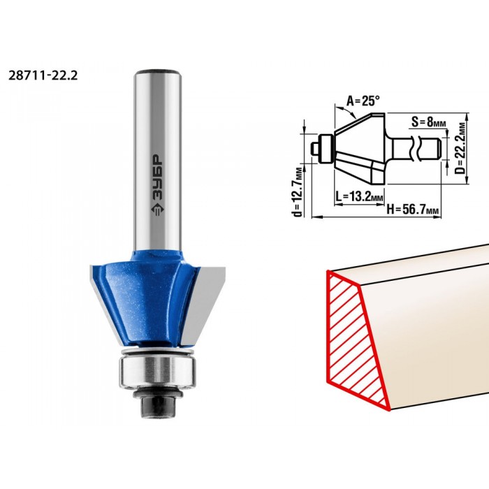 Фреза кромочная калевочная фасочная №9 22.2?13 мм ЗУБР Профессионал 28711-22.2