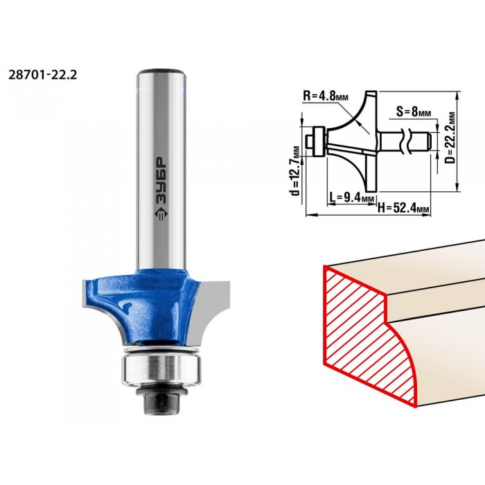 Фреза кромочная калевочная №1 22.2?9.4 мм радиус 4.8 мм ЗУБР Профессионал 28701-22.2