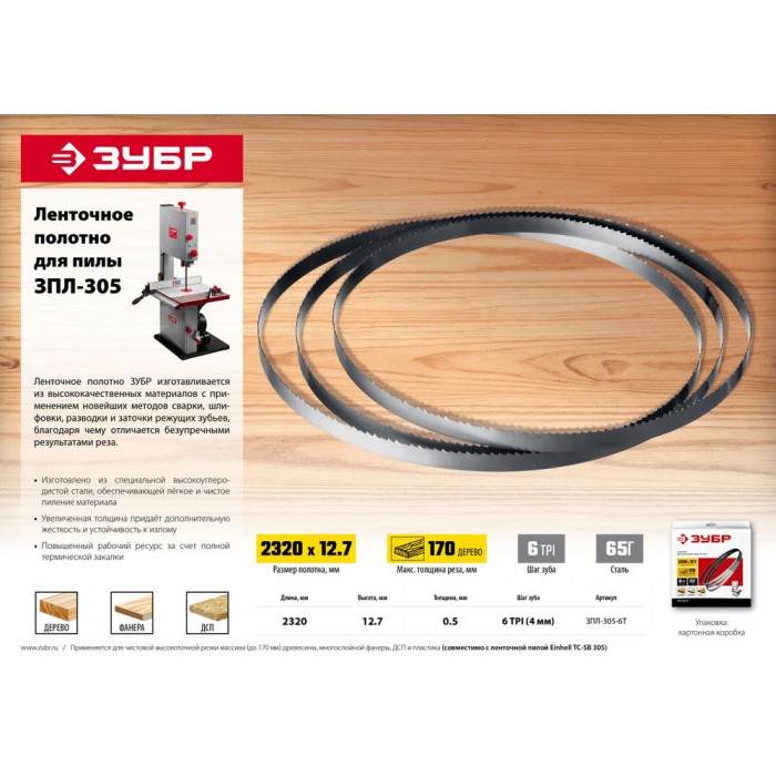 Полотно ленточное 2320?12.7?0.5 мм 6TPI для пилы сталь 65 Г ЗПЛ-305 ЗУБР ЗПЛ-305-6Т