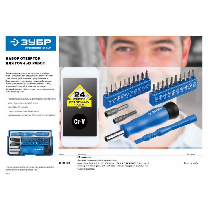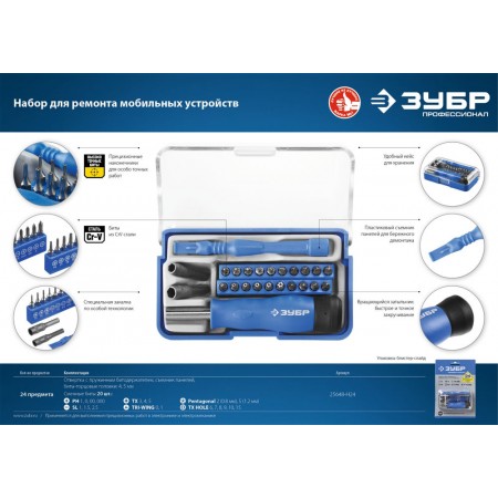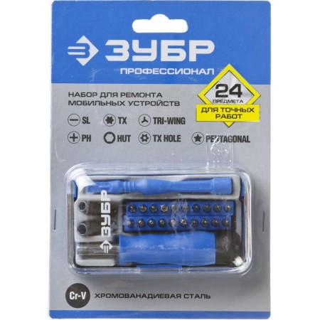 Набор отвертка для точных работ с насадками 24 предм. Профессионал ЗУБР 25648-H24