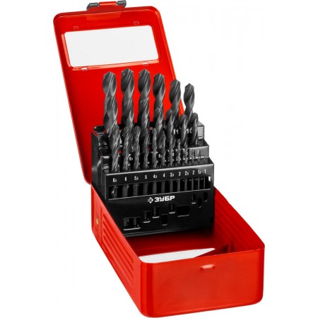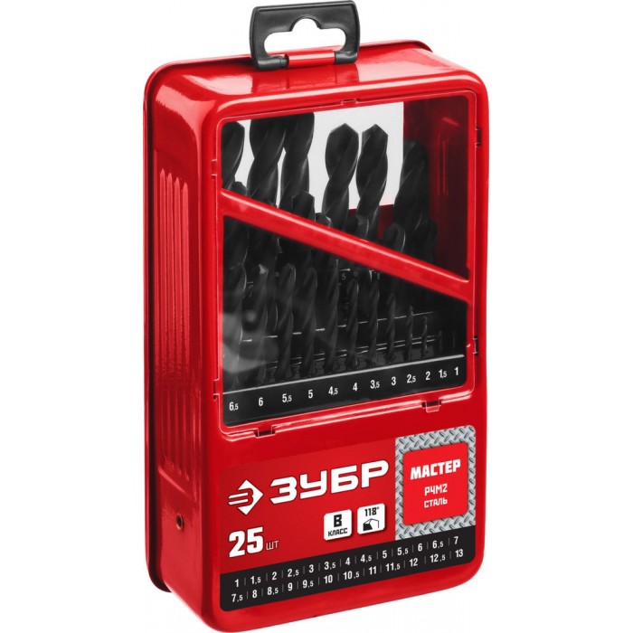 Набор сверл по металлу 25 шт, 1–13 мм, сталь Р4М2, класс В, металлический бокс ЗУБР 29605-H25