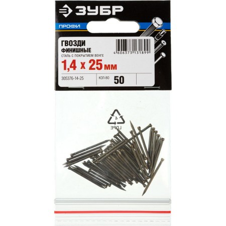 Гвозди финишные 25?1.4 мм 50 шт венге ЗУБР Профессионал 305376-14-25
