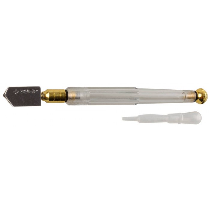 Стеклорез ЗУБР - оптимальный инструмент для точной и аккуратной резки стекла. Пластмассовая рукоятка и твердосплавный режущий элемент обеспечивают длительный срок службы инструмента. Использование масла облегчает процесс резки и увеличивает срок службы режущего элемента