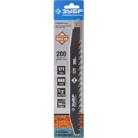 Полотно для сабельной эл.ножовки по легкому бетону 250/200.17T с тв. зубьями Профессионал ЗУБР 159770-17