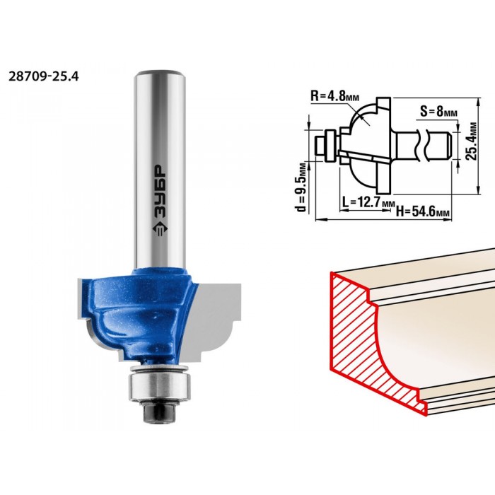 Фреза кромочная калевочная №7 25.4?13 мм радиус 4.8 мм ЗУБР Профессионал 28709-25.4