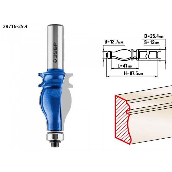 Фреза кромочная фигурная №5 25.4?41 мм хвостовик 12 мм ЗУБР Профессионал 28716-25.4