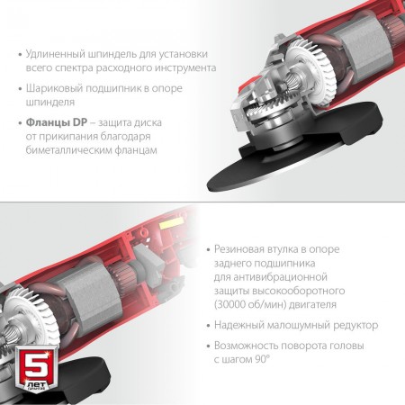 - Поворотные голова и основная рукоятка для более комфортной работы даже в сложных условиях