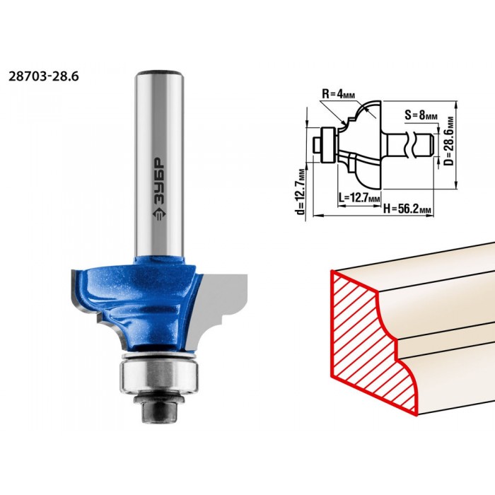 Фреза кромочная калевочная №3 28.6?12.7 мм радиус 4 мм ЗУБР Профессионал 28703-28.6