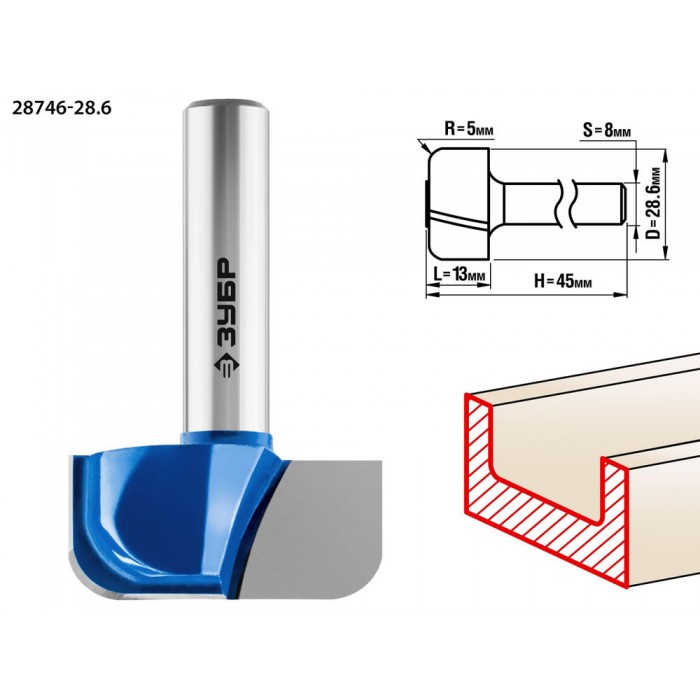 Фреза пазовая фасонная №7 28.6?13 мм радиус 5 мм ЗУБР Профессионал 28746-28.6