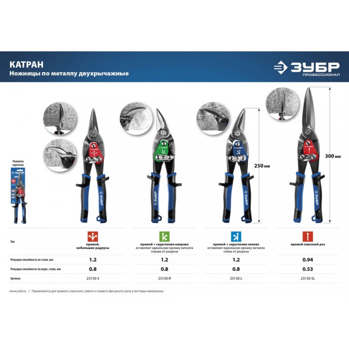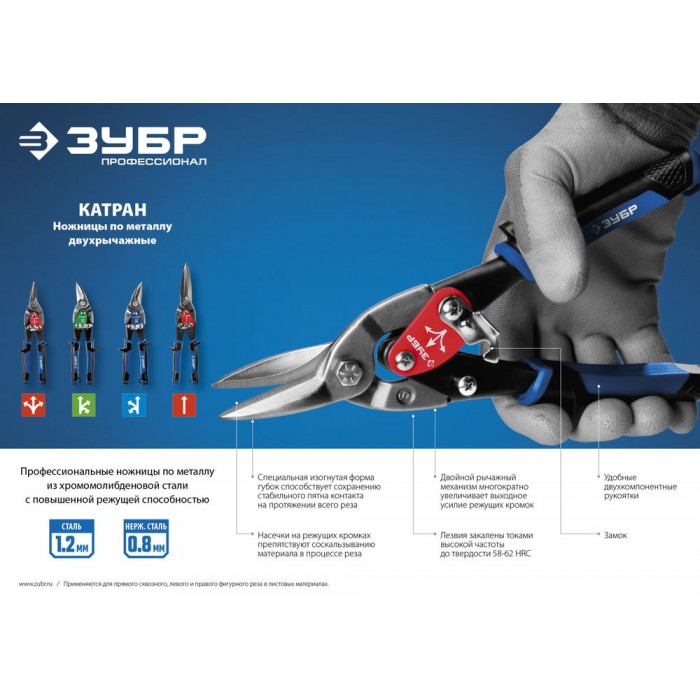 Профессиональный инструмент для реза листового металла, режущая способность: сталь - 0.94 мм, нерж. - 0.53 мм