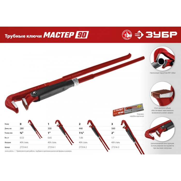 Изготовлен из высококачественной инструментальной стали. Для увеличения износостойкости зубцы подвергнуты индукционной закалке токами высокой частоты до твердости 50 - 57 HRC. Цельнокованая конструкция и специальная форма губок позволяют применять инструмент при больших нагрузках. Угол наклона зубьев обеспечивает максимально возможное усилие захвата.