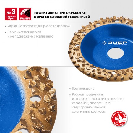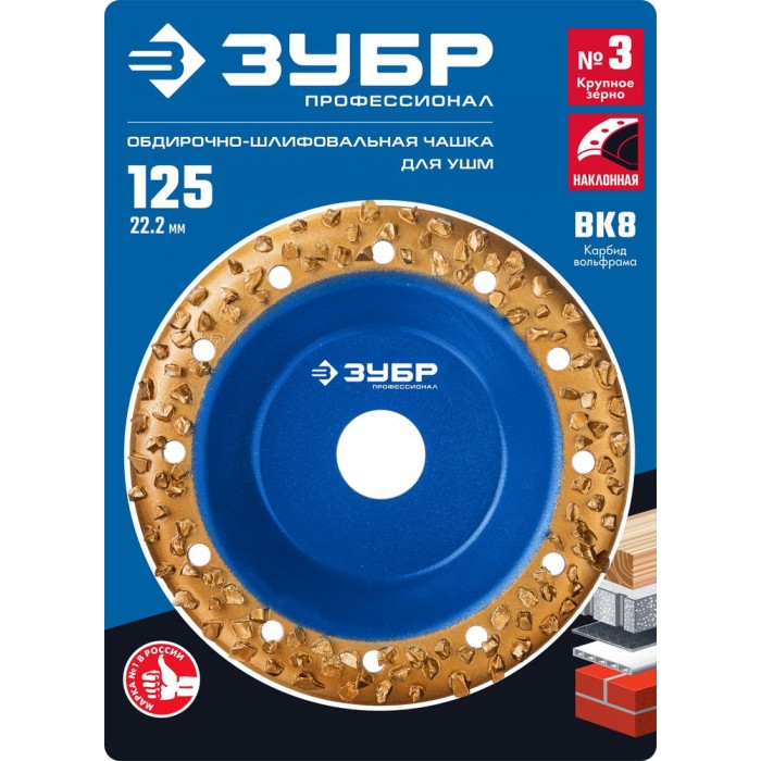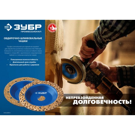 Обдирочно-шлифовальные чашки ЗУБР Профессионал изготовлены из износостойкого зерна твердосплава ВК8 скрепленного сверхпрочной пайкой с корпусом чашки благодаря чему обладают уникальным сверхвысоким ресурсом.