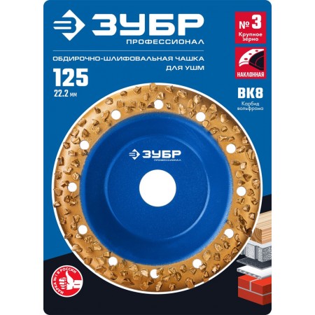 Чашка обдирочно-шлифовальная наклонная №3, крупное зерно, 125 мм, ВК8 ЗУБР Профессионал 33435-3