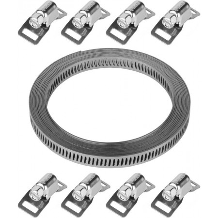 Весь размерный ряд хомутов в одном наборе ЗУБР! Штампованная лента длиной 3 метра позволяет создавать червячные хомуты любого диаметра. По всей длине ленты имеются просечки, расположенные на одинаковом расстоянии друг от друга. Червячный винт в замке снабжен шестигранной головкой и шлицем SL, что позволяет использовать при монтаже гаечный ключ или шлицевую отвертку.