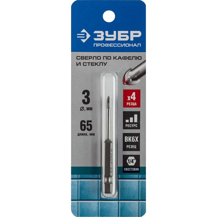 Сверла по кафелю и стеклу ЗУБР - надежный и проверенный инструмент высокого качества.