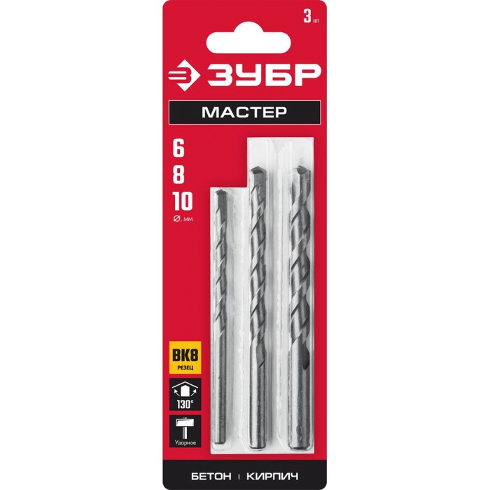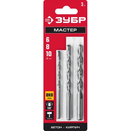 Набор сверл по бетону 3 шт: d 6–8–10 мм ЗУБР 2922-H3_z01