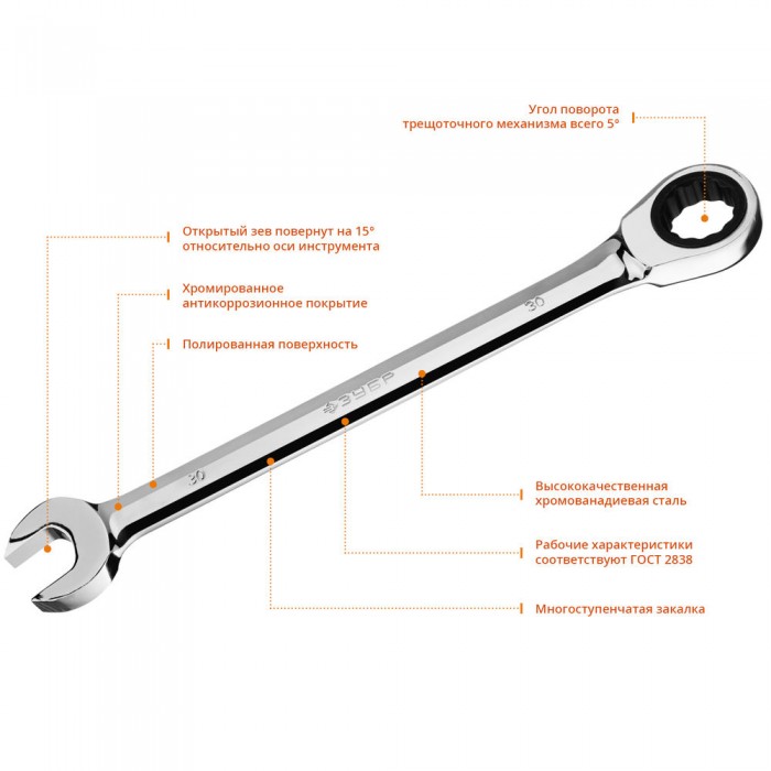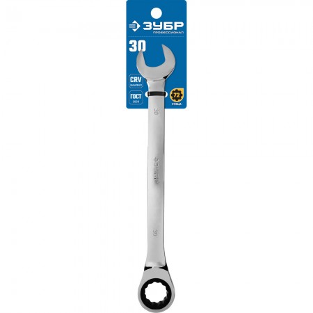 Ключ гаечный комбинированный трещоточный 30 мм Профессионал ЗУБР 27074-30
