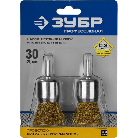 Щетки кистевые для дрели 30 мм, витая стальная латунированная проволока 0.3 мм, набор ЗУБР Профессионал 35225-30-H2_z02