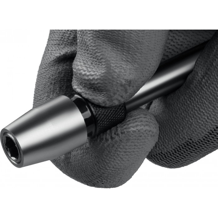 Шестигранный хвостовик с проточкой обеспечивает быструю фиксацию удлинителя в патроне.