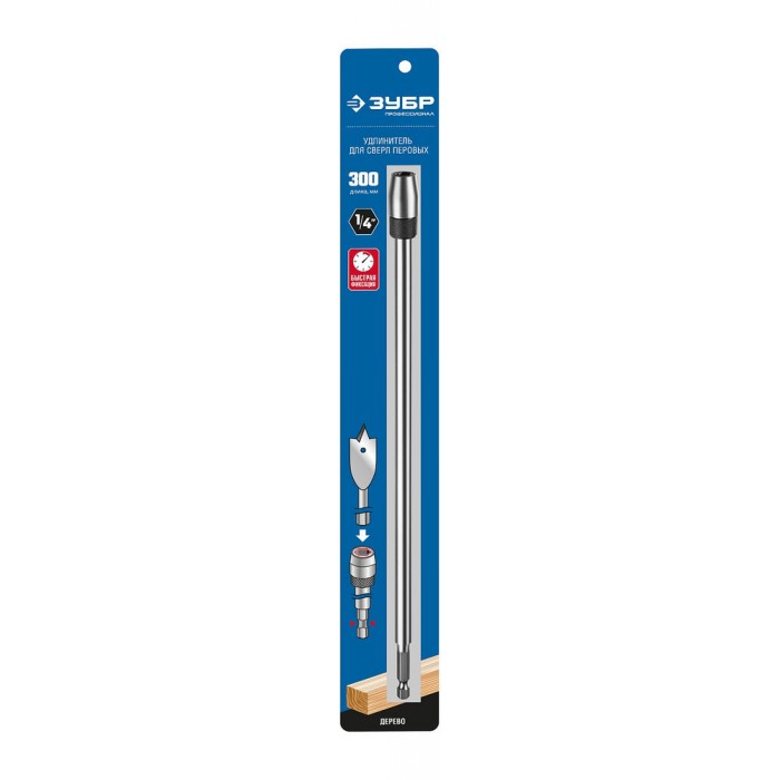 Удлинитель с быстросъёмным устройством для перовых сверл 300 мм, хвостовик HEX 1/4" ЗУБР 29508-300_z01