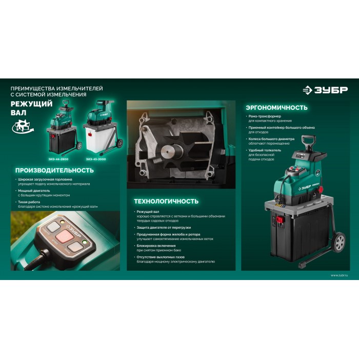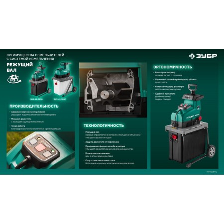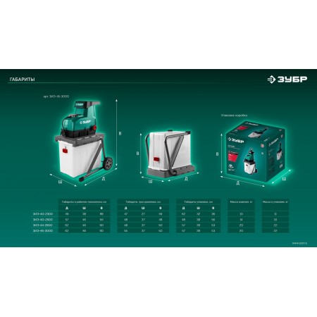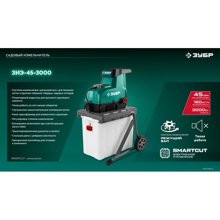 ЗУБР 3000 Вт, измельчитель садовый электрический (ЗИЭ-45-3000)