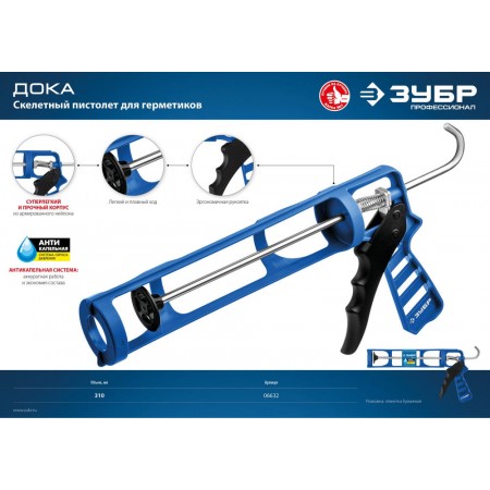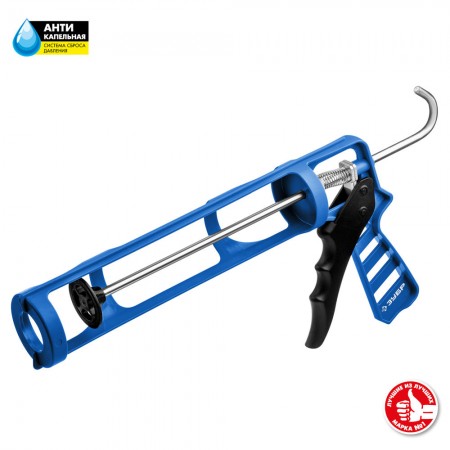 Пистолет для герметиков подходит для работы с картриджами объемом 310 мл, имеет прочный корпус из армированного нейлона, Данная спецификация обеспечивает легкость и надежность конструкции пистолета при использовании.