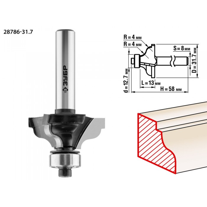 Фреза кромочная калевочная №3 31.7?13 мм радиус 4 мм ЗУБР Профессионал 28786-31.7