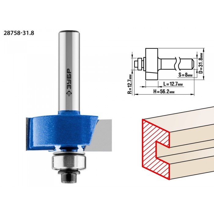 Фреза фальцевая 31.8?12.7 мм хвостовик 8 мм ЗУБР Профессионал 28758-31.8