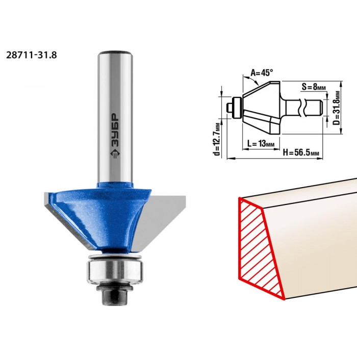 Фреза кромочная калевочная фасочная №9 31.8?13 мм ЗУБР Профессионал 28711-31.8