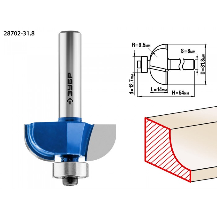 Фреза кромочная калевочная №2 31.8?14 мм радиус 9.5 мм ЗУБР Профессионал 28702-31.8