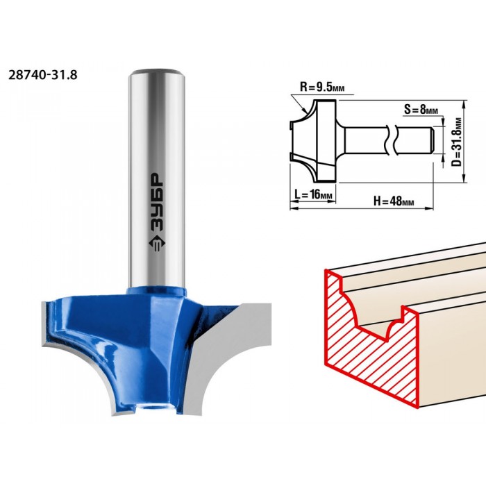 Фреза пазовая фасонная №1 31.8?16 мм радиус 9.5 мм ЗУБР Профессионал 28740-31.8