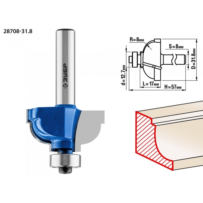 Фреза кромочная калевочная №7 31.8?17 мм радиус 8 мм ЗУБР Профессионал 28708-31.8