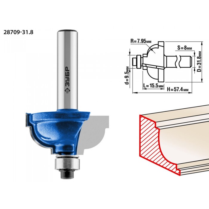 Фреза кромочная калевочная №7 31.8?17 мм радиус 8 мм ЗУБР Профессионал 28709-31.8