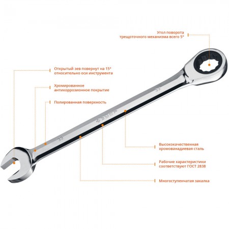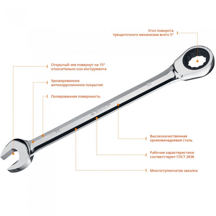 Ключ гаечный комбинированный трещоточный 32 мм Профессионал ЗУБР 27074-32