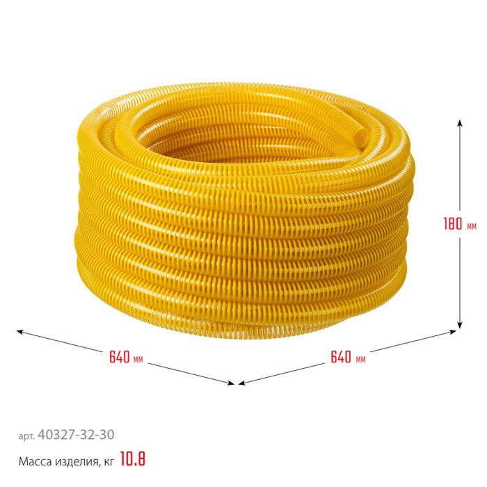 Шланг напорно-всасывающий 32 мм?30 м 10 атм со спиралью ПВХ ЗУБР Профессионал 40327-32-30