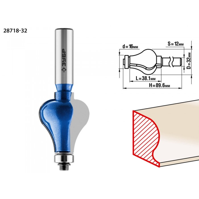 Фреза кромочная фигурная №7 32?38 мм хвостовик 12 мм ЗУБР Профессионал 28718-32