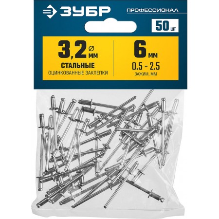 Заклёпки стальные 3.2?6 мм 50 шт ЗУБР Профессионал 313126-32-06