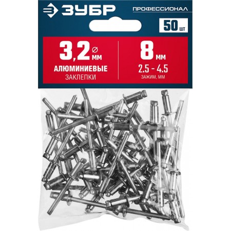 Заклёпки алюминиевые 3.2?8 мм 50 шт ЗУБР Профессионал 313106-32-08