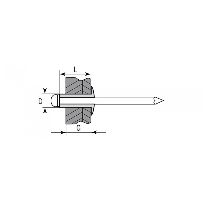 • Корпус заклепки изготовлен из алюминиевого сплава AlMg1.5 c улучшенными механическими свойствами: высокая пластичность, повышенная коррозионная стойкость. Стержень заклепки изготовлен из оцинкованной стали.