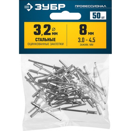 Заклёпки стальные 3.2?8 мм 50 шт ЗУБР Профессионал 313126-32-08