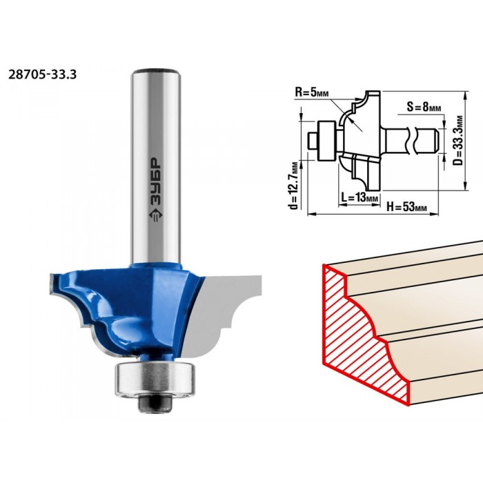Фреза кромочная калевочная №4 33.3?13 мм радиус 5 мм ЗУБР Профессионал 28705-33.3