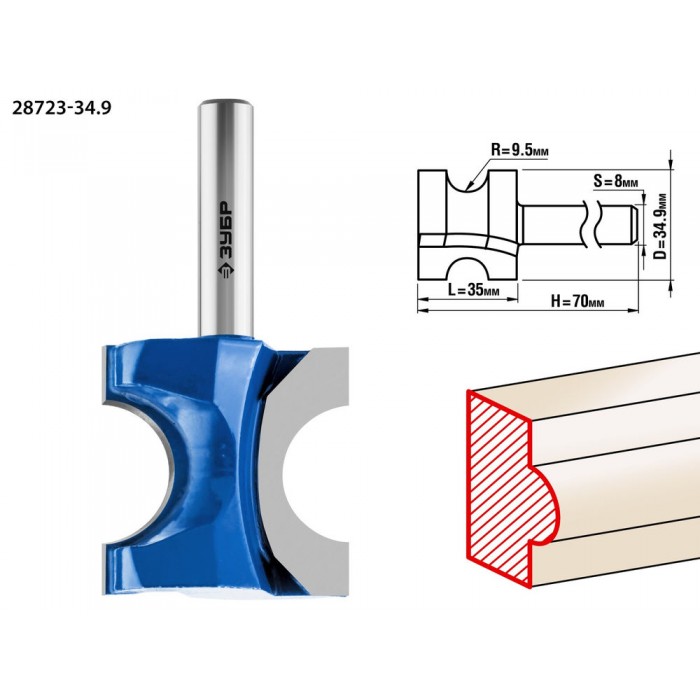 Фреза отлично подходит для обработки кромок, торцев, получения декоративного профиля при работе с различными видами древесины.
